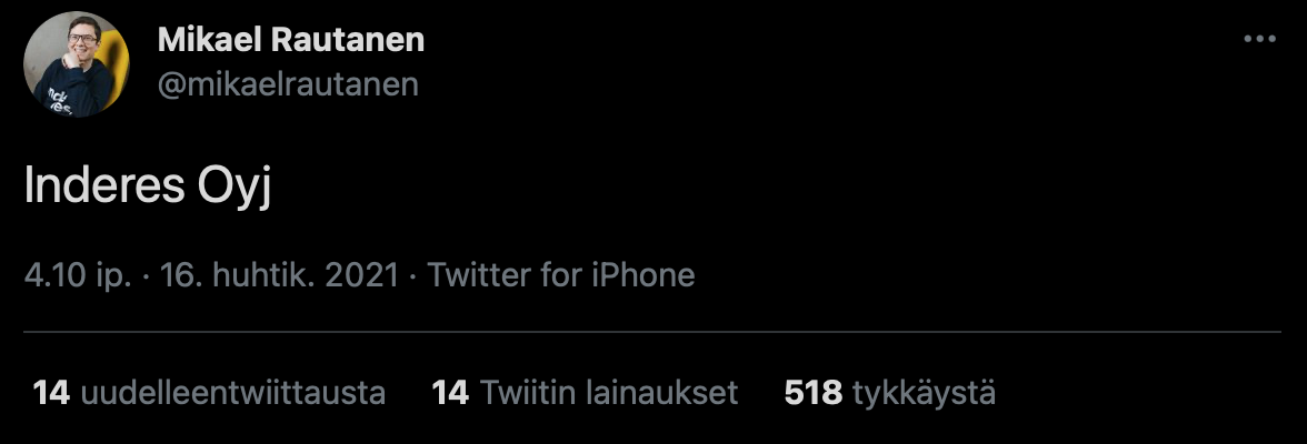 Fra dette tweet får vi sikkert snart mere information. I henhold til Inderes’ motto “analyse tilhører alle” kan man i dette tilfælde sige, at “virksomheden tilhører alle”.