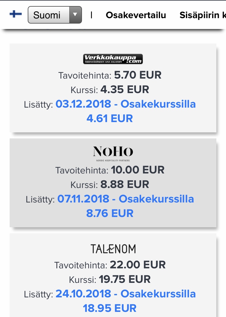 Kyllä tuo TOP 3 on ollut hyvinkin mielenkiintoinen seurattava ja palvelee osaa sijoittajista ”herättelijänä”.