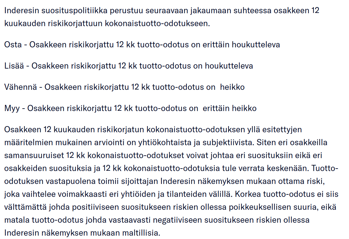 Inderesin DCF-malli, kuten käsitykseni mukaan hyvin monet muutkin DCF-mallit, käyttää terminaaliarvon laskentaan tätä ns. “päättymättömän kasvun metodia” (jos nyt käänsin oikein). Itsessään tässä metodissahan noin faktisesti terminaaliin diskontataan n-määrä vuosia, missä n lähestyy ääretöntä (eli diskontataan siis ennusteperiodin ulkopuolelle jäävien vuosien kaikki kassavirrat nykyarvoon). Terminaaliarvohan matemaattisesti on vain viimeisen ennustevuoden kassavirran kerrannainen, mutta tämän voi myös mieltää hyvin yksinkertaistettuna niin, että yksittäisen vuoden diskontatun kassavirran arvio on joku x = TERM-arvo/n, missä n = terminaaliin sisällytettävien vuosien lukumäärä. Tuota n-muuttujan arvoahan voi vaihdella mielensä mukaan, mutta mitä lähemmäs ääretöntä mennään, niin sitä pienemmäksi yksittäisen ennustevuoden kassavirta pienenee.