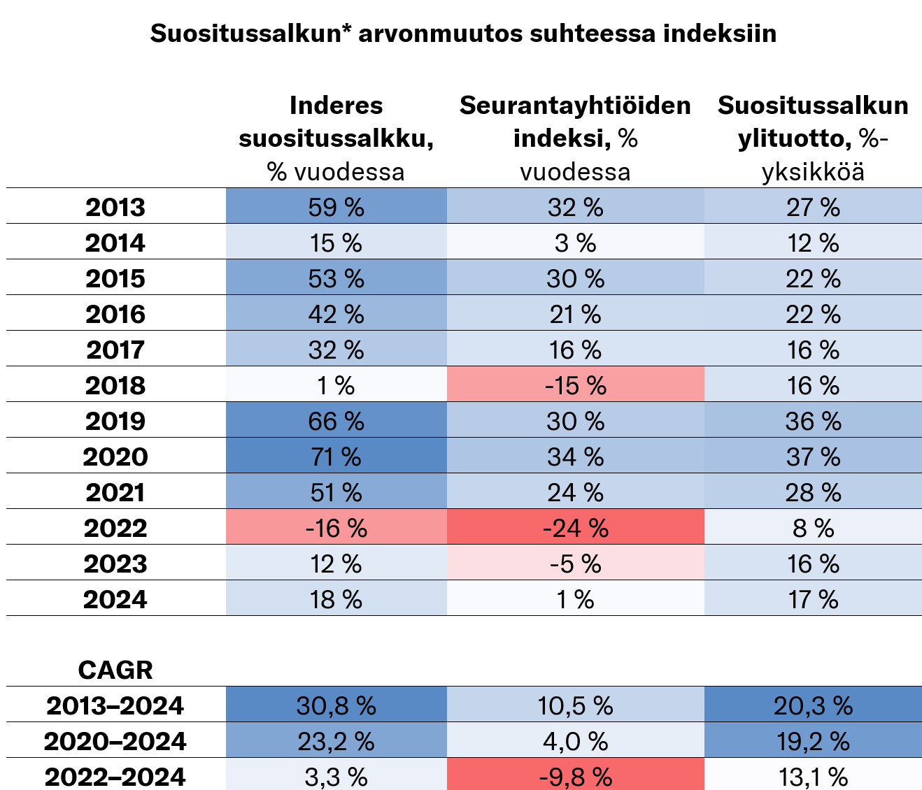 Inderesin suosituksissa on ollut aineksia reiluun ylituottoon