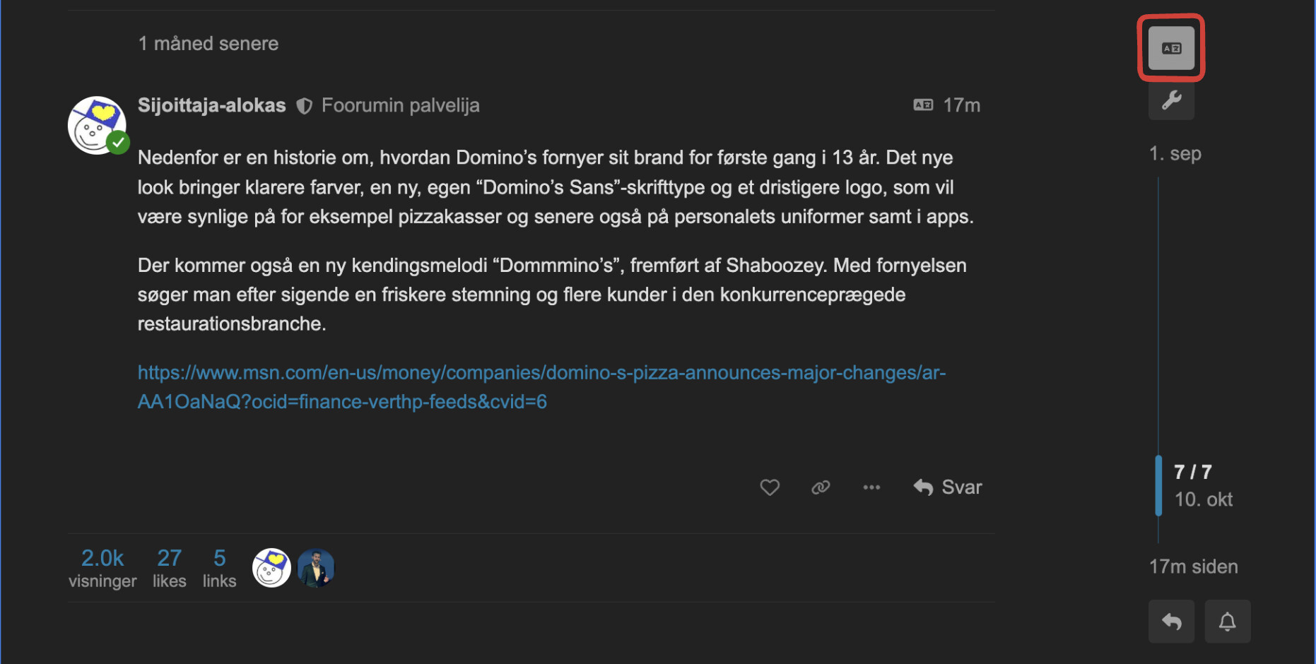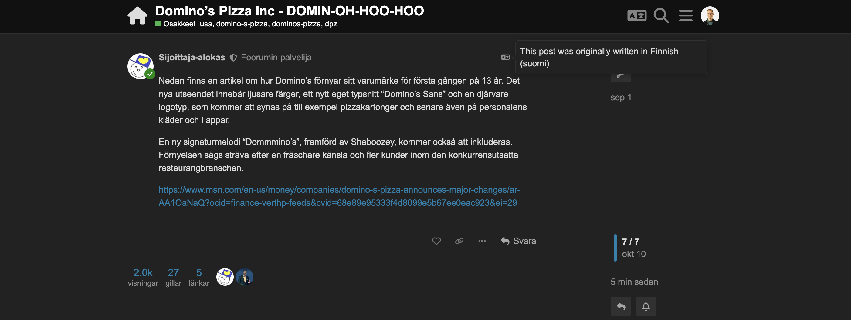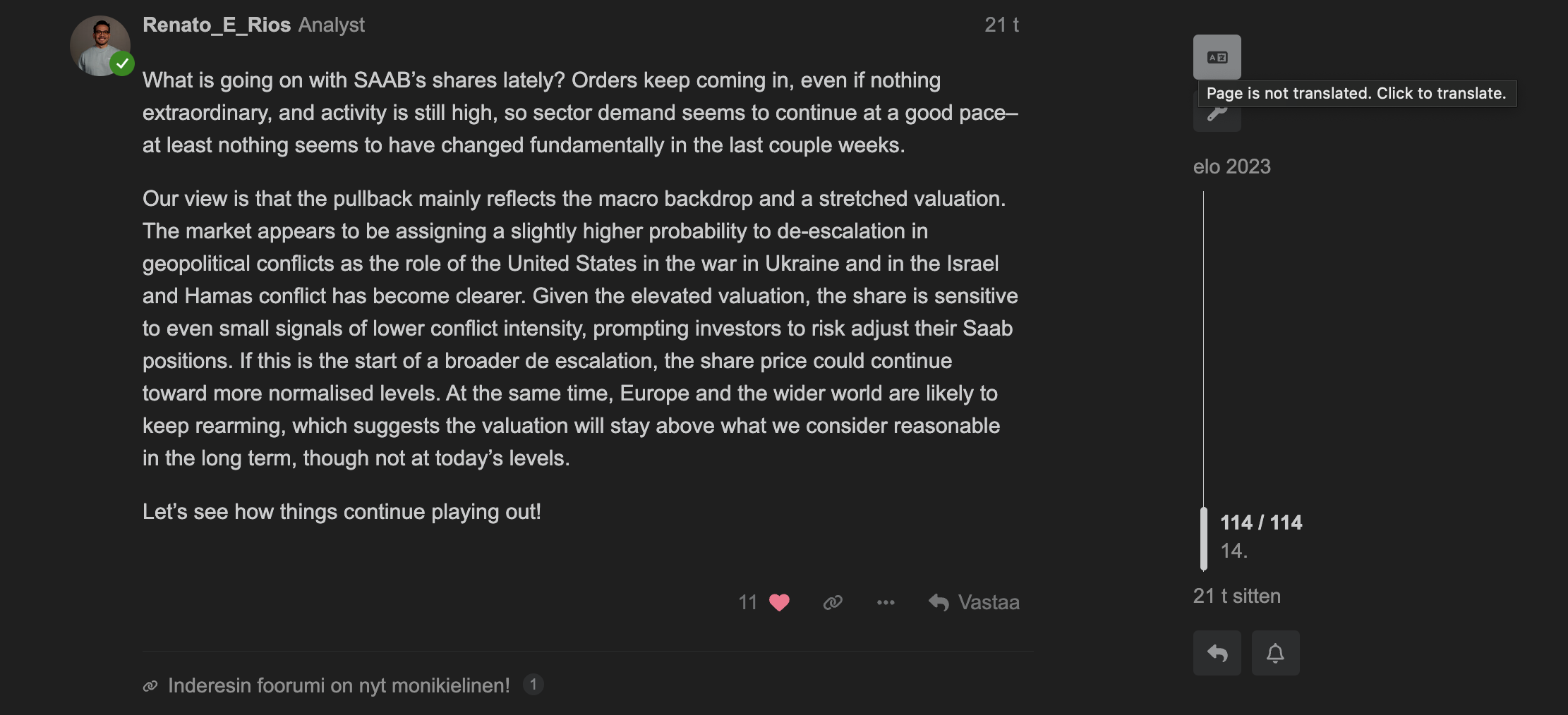 Kerroimme toukokuussa, että tutkimme monikielisen foorumin mahdollisuutta. Haluamme yhdistää sijoittajat ja yhtiöt, eikä laadukas sijoituskeskustelu tunne kielirajoja. Nykyiset kielimallit tarkkuudeltaan ja hinnaltaan mahdollistavat monikielisen ja kansainvälisesti lähestyttävämmän foorumin.