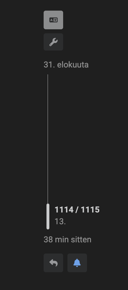 @ljkangas Ketjuissa joissa AI on käynyt tolskaamassa löytyy nappi tuosta (tietysti tumma nappi tummalla pohjalla ettei sitäkään varmasti näe). Käytännössä katsot hiirtä siinä päällä niin saat selville onko se nappi aktiivinen vai ei.