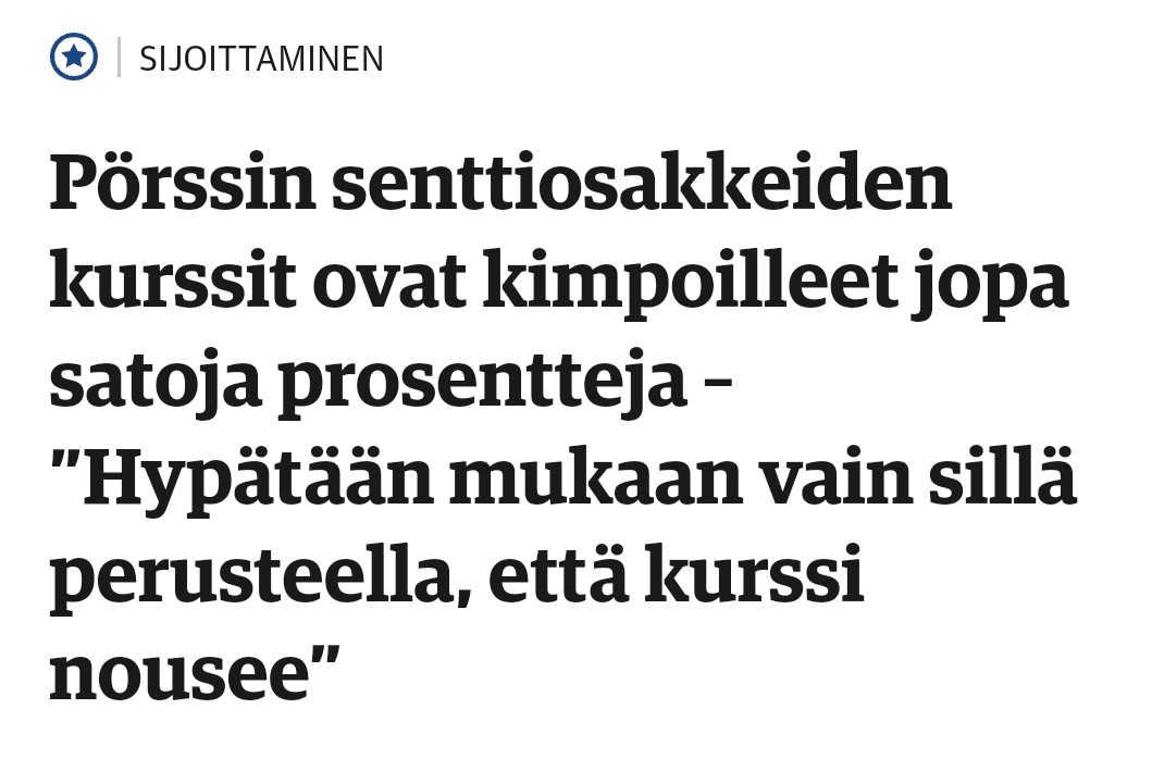 Man burde få et AI-baseret Alma Media-filter til browsere, som oversætter de ‘sjove’ og ‘nysgerrighed og fantasi stimulerende’ overskrifter i finansielle medier som Kauppalehti, Talouselämä og Arvopaperi til noget, som man lærer i grundskolen.
