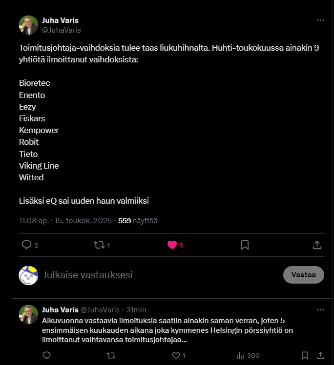 Juha Varis ja tviitti toimarivaihdoksista ![]()