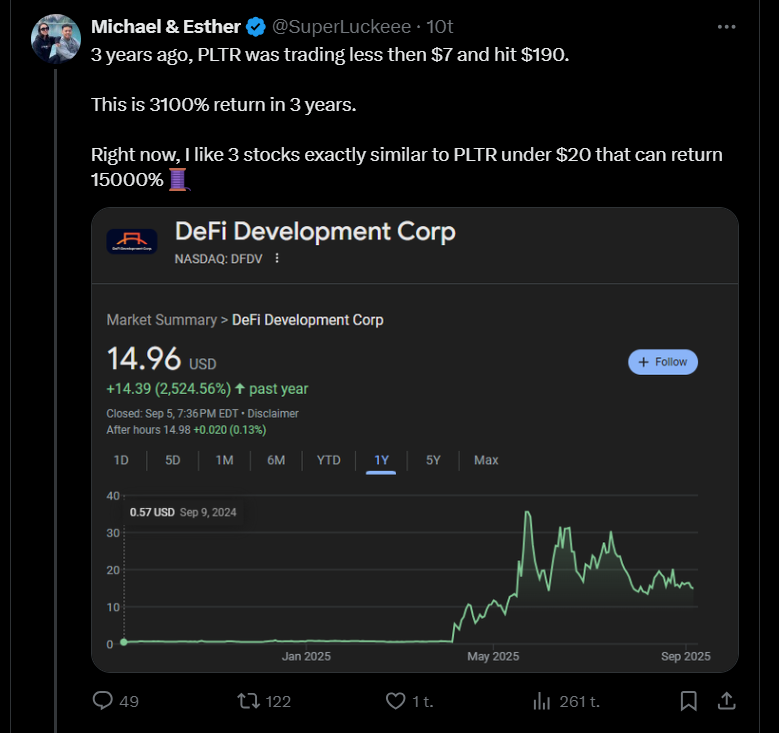 Linkin takaa on tviittiketju kolmesta yhtiöstä; DeFi Development Corp, Lightbridge Corp ja Opendoor Technologies, joita tviittaaja pitää mahdollisina megapäkkereinä tai jotain sellaista. ![]()