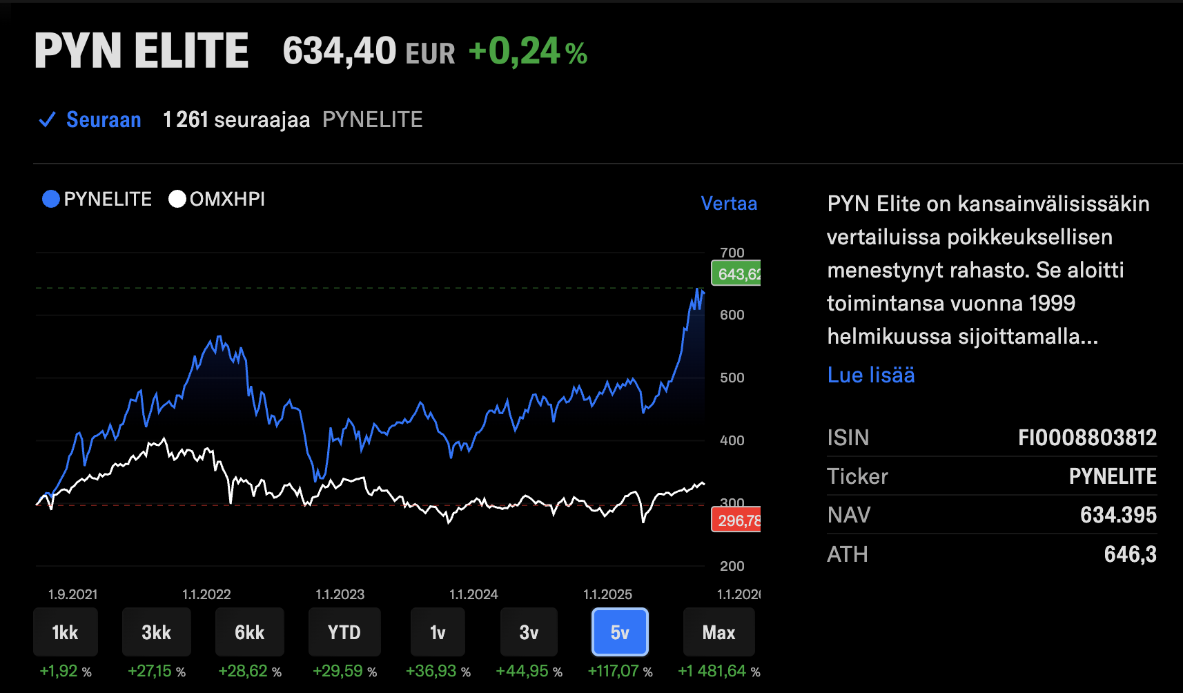 När det gäller finska företags underprestation kan jag ge ett par tröstord. Legendariska PYN Elite, som publicerar på Inderes plattform och investerar i Vietnam, underpresterade i flera år efter 2021. På Inderes.fi har det aktivt funnits inlägg från PYN om hur billigt det är i Vietnam. Hur många fondägare har gett upp på vägen? Nu har underprestationen korrigerats på några månader och 5-årsavkastningen är +117 %. Det är nästan detsamma som det hyllade Nasdaq100-indexets 124 % avkastning under samma period! ![]()