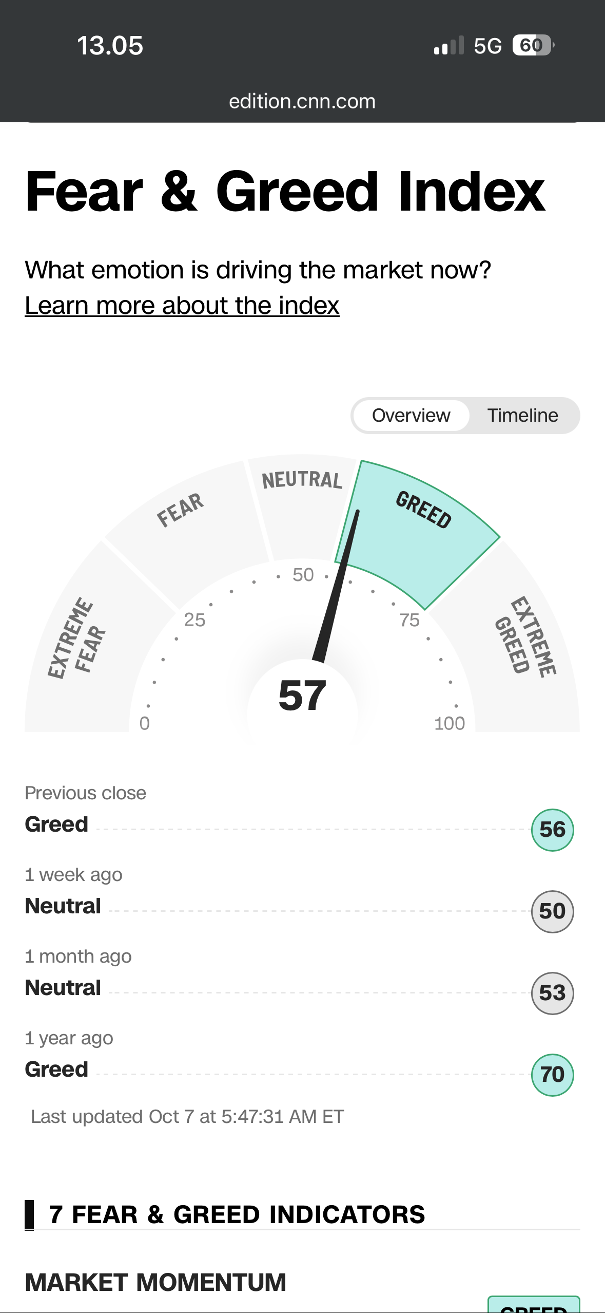 Tuntuu muuten käsittämättömältä, että klassinen Fear and Greed -indeksi on tällä tasolla vaikka USAssa nähdään jos jonkinmoisia päivänousuja eri osakkeilla.