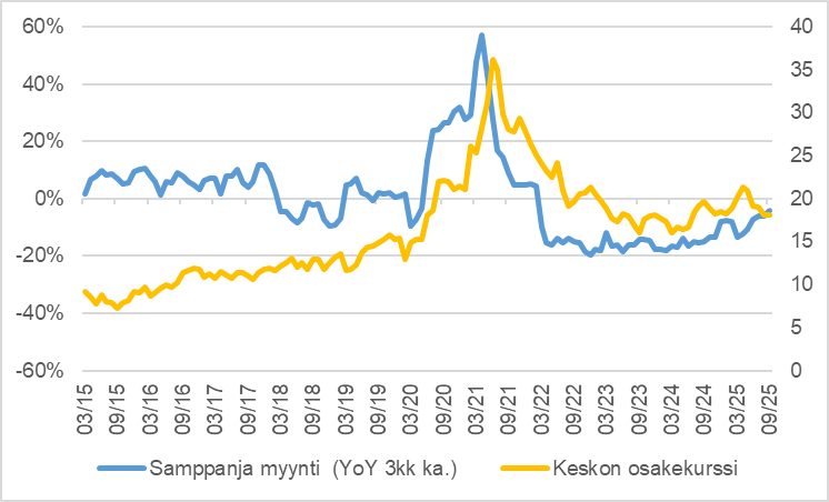 Ristiriitaisesti samaan aikaan esimerkiksi Helsingin pörssin päälistan yhtiöiden tulokset heikkenevät. Angervuo ennustaa, että Helsingin pörssin yhtiöiden nettotulokset laskevat jopa 10-15 prosenttia vuonna 2025.