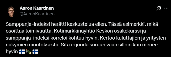 Täytyy kyllä antaa nyt iso kiitos uudelle Vernerin Vartille (Outside view ja base rates), oli jotenkin itselle hyvin antoisa jakso, sain monta hyvää “ahaa-elämystä” yhtiöiden kasvusta. Tuo vähän realismia kasvu-odotuksiin, kun huomioi vartissa esimerkkeinä olleiden yhtiöiden keskimääräisiä kasvuvauhteja.