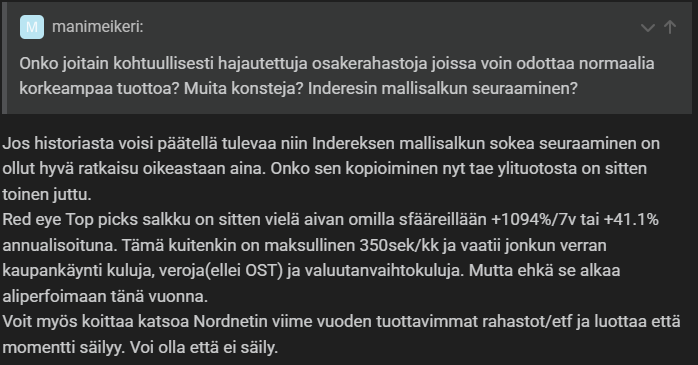 Palataan vuoteen 2021. Foorumilla aloittelevat (?) sijoittajat suunnittelevat mallisalkkujen seuraamista sijoitustrategiaksi, myös Inderesin.