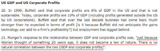 Tämä kyllä sattuu aina vähän näissä vertailuissa, vaikka muuten voisi ollakin ihan kätevä. Pitemmissä kuvaajissa tosin globaalia BKT:tä ei varmaan voisi edes käyttää. Vähän sama kuin Buffett indikaattorin nostaminen esille talousmedian toimesta, minkä Charlie Munger jokseenkin tyrmäsi 2013 Berkshire Hathawayn yhtiökokouksessa: