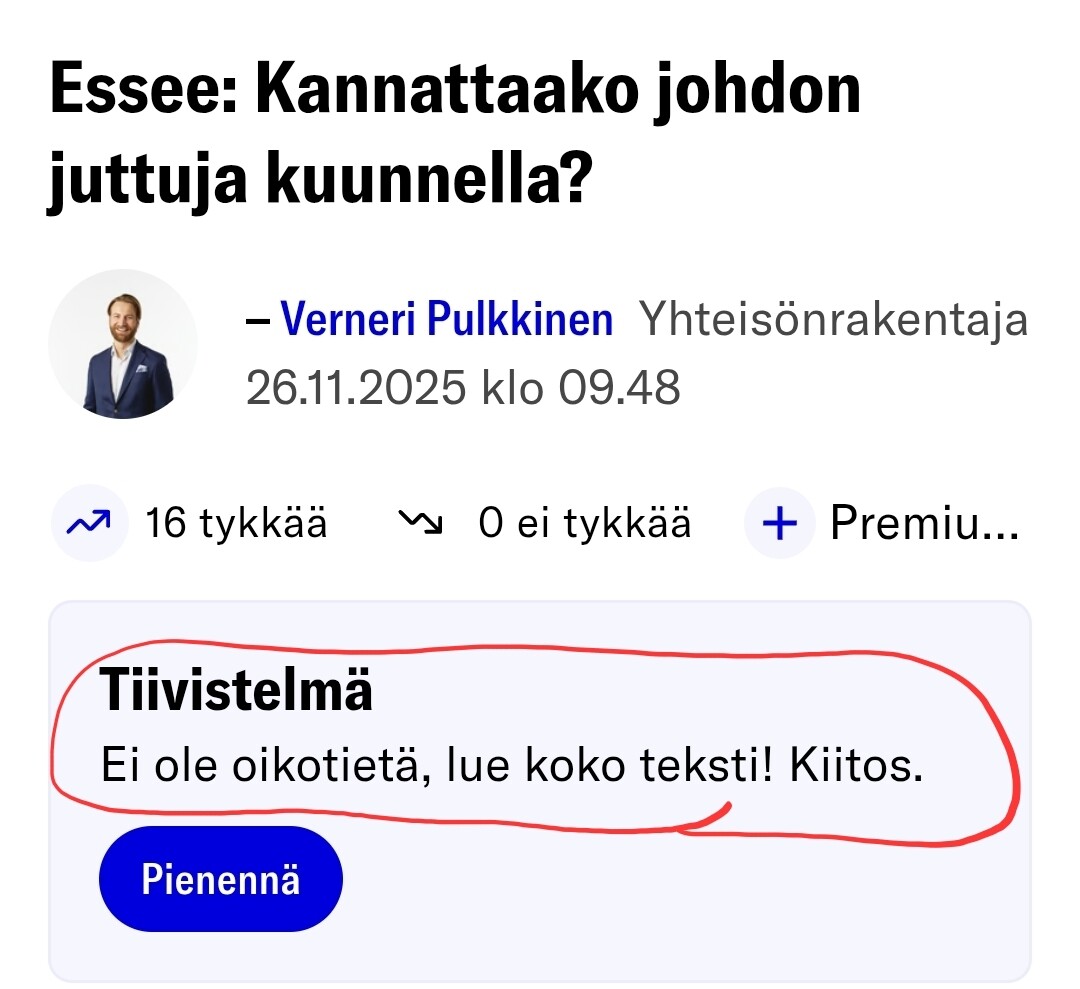 Reading investment discussions from various sources, one cannot avoid associations with the discussions from the AP-areena era. There too were dedicated investors who for years believed that the half-dead Benefon would rise to new glory. Later, the Wincapitalists could not believe they had invested in a scam, and the state took their money, as otherwise they would have owned the entire country.