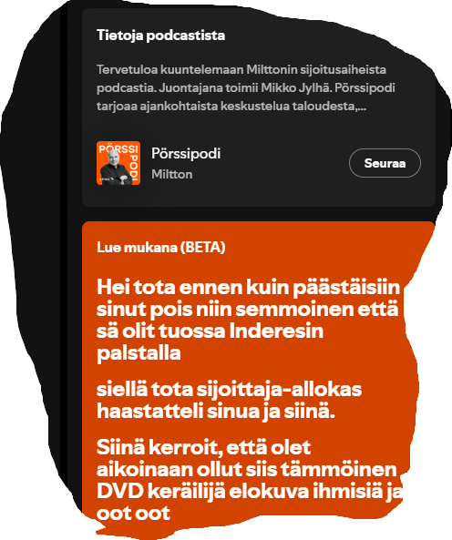 Tomma kontorslokaler å sin sida orsakar kostnader både för fastighetsägare och investerare, samt för deras hyresgäster. Tydligen kan hela landets tomma kontorsyta extrapoleras baserat på de tomma kontoren i huvudstadsregionen. Kanske samma metod kunde användas för att uppskatta beläggningsgraden för hyresbostäder och padelhallar i hela landet? Av någon anledning genererar även en normal underutnyttjandegrad på 10 % intäktsförluster på 379 M€, men en ökning med 6 procentenheter orsakar intäktsförluster på 614 M€, jag kunde inte få detta att stämma med min egen kalkylator.
