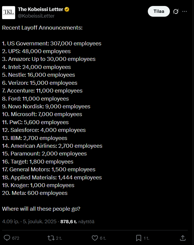 Romahdusta, verta ja tuskaa luvassa (myös) 2026, perinteisen varma kontra signaali pörssien suunnasta. Vain Cramerin positiiviset ennusteet olisivat varmempi merkki ![]()