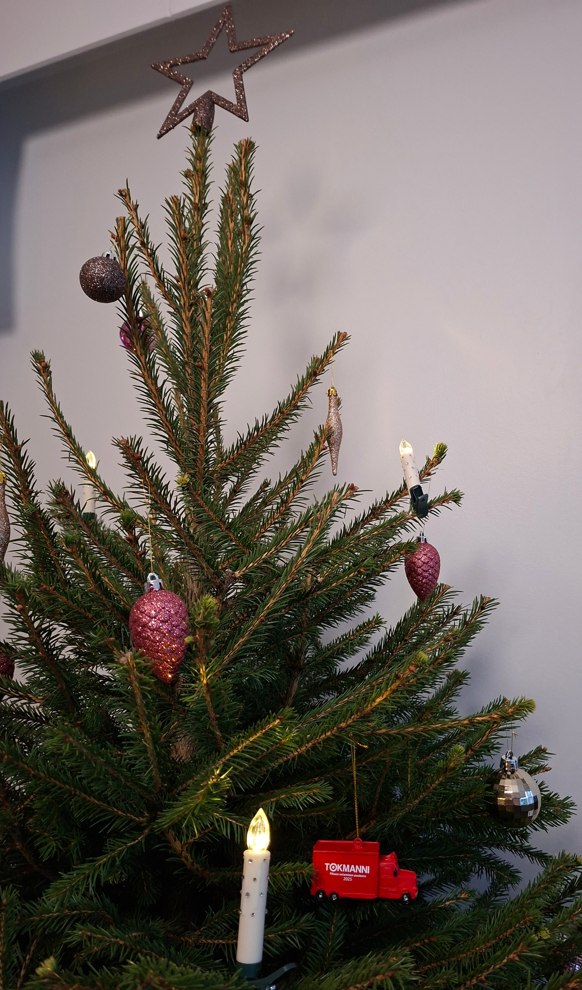 Siellä ajaa Mr Tokmanni. Kuusi on muuten ostettu Tokmannilta. Todella tuuhea kuusi todella edullisesti. Paras hinta-laatusuhde ihan varmasti mitä pääkaupunkiseudulla ainakin on. Taisin maksaa 17€ (mobiilikuponki) ja tuosta yksilöstä olisi voinut joku maksaa 80€ toiselta myyjältä ostettuna. Väitän että parempi kuin naapurin metsästä varastaminen, sillä laatu on paljon parempi vaikka ilmainen onkin edullinen.