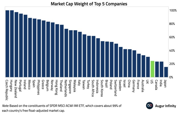 Tšekissä, Unkarissa ja Uudessa-Seelannissa viisi suurinta yritystä ylittävät 90 prosenttia kokonaismarkkina-arvosta. :smiling_face_with_sunglasses: