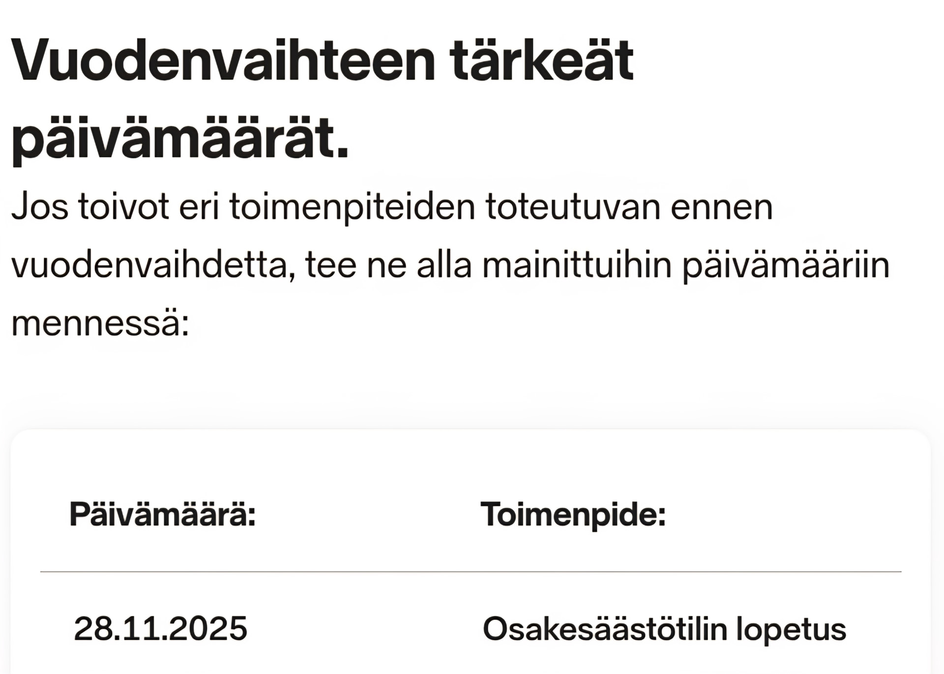 Löytyy tarvittaessa googlettamalla “Vuodenvaihteen tärkeät päivämäärät sijoittajalle”