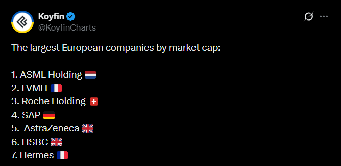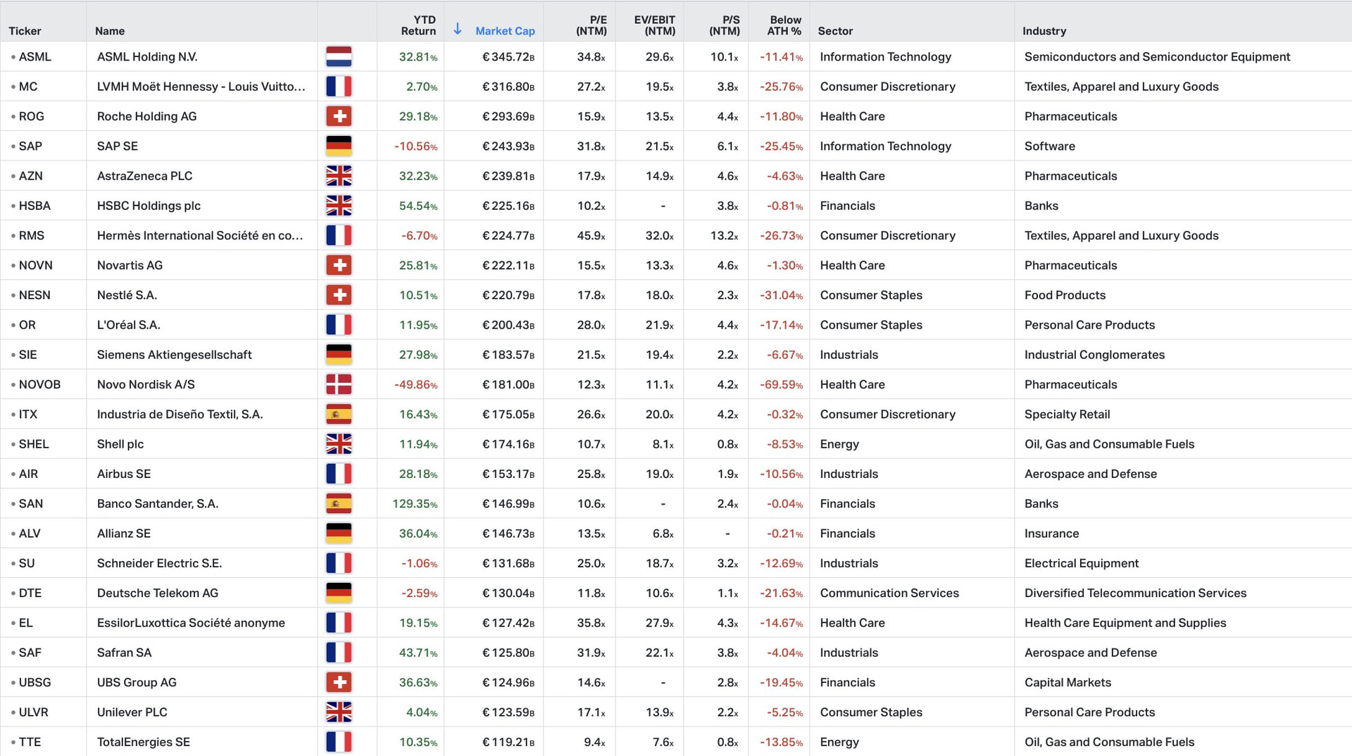 Tässä Euroopan suurimmat yhtiöt markkina-arvon mukaan ![]()