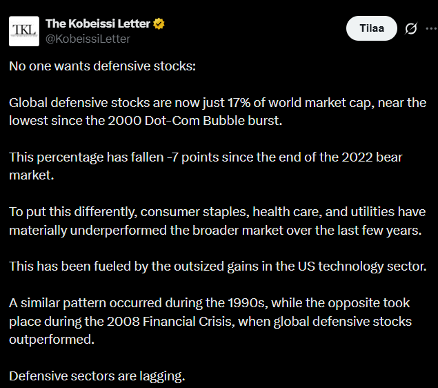 According to the tweet below, investors are currently not interested in defensive sectors.