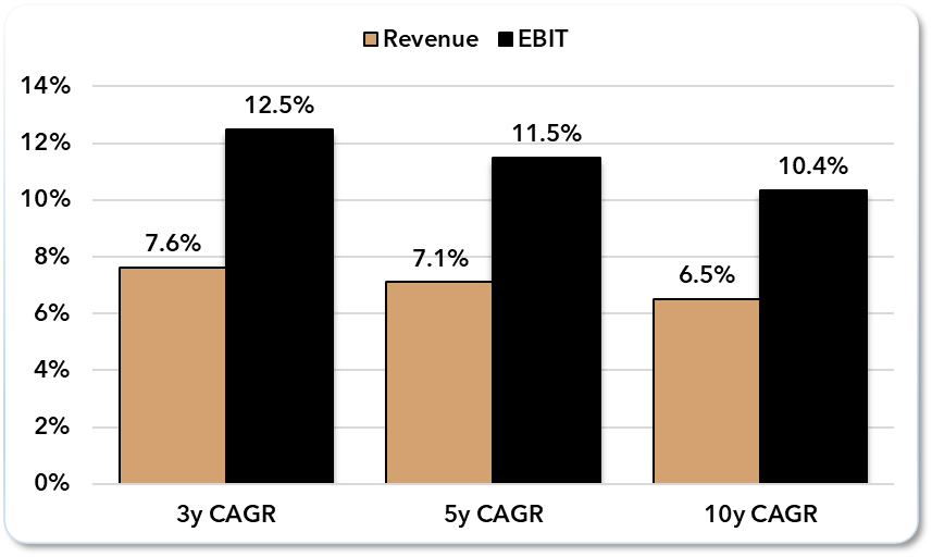 Bolagets fria kassaflödesavkastning, när man drar av aktiebaserade incitament från det fria kassaflödet, är cirka 4 % och de här långsiktiga CAGR-talen är ju utmärkta.