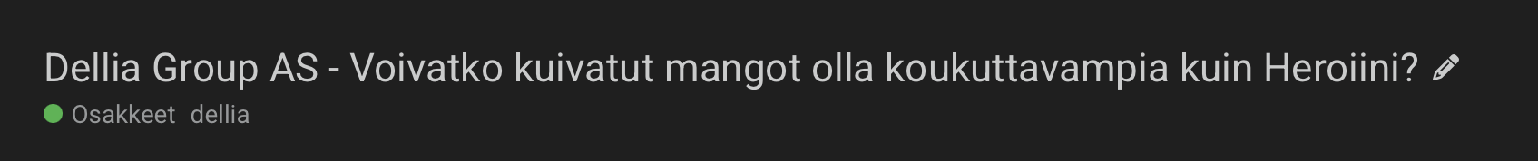 Det her mindede mig lige om noget. Dengang Magnora-hypen var på sit højeste, var der vist en i kaffestuen, der lancerede udtrykket “tvangskøb” (pakko-osta). Fri fortolkning: @Pohjolan_Eka har fundet en skjult perle, og hvis man lader være med at købe den, bliver det enhver forum-brugers største investeringsbrøler resten af livet.