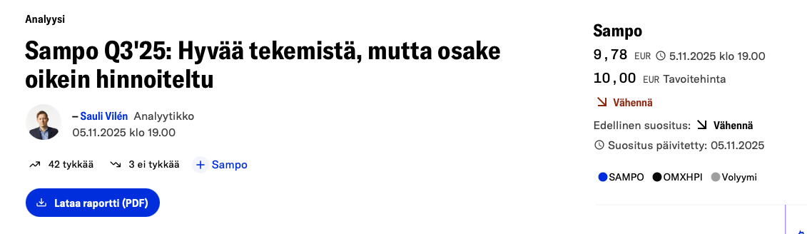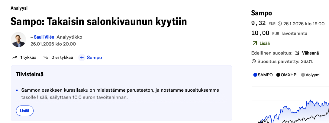 Sampo hiipii ylöspäin pitkin vuotta 2025. Liian kallis ei kannata ostaa.