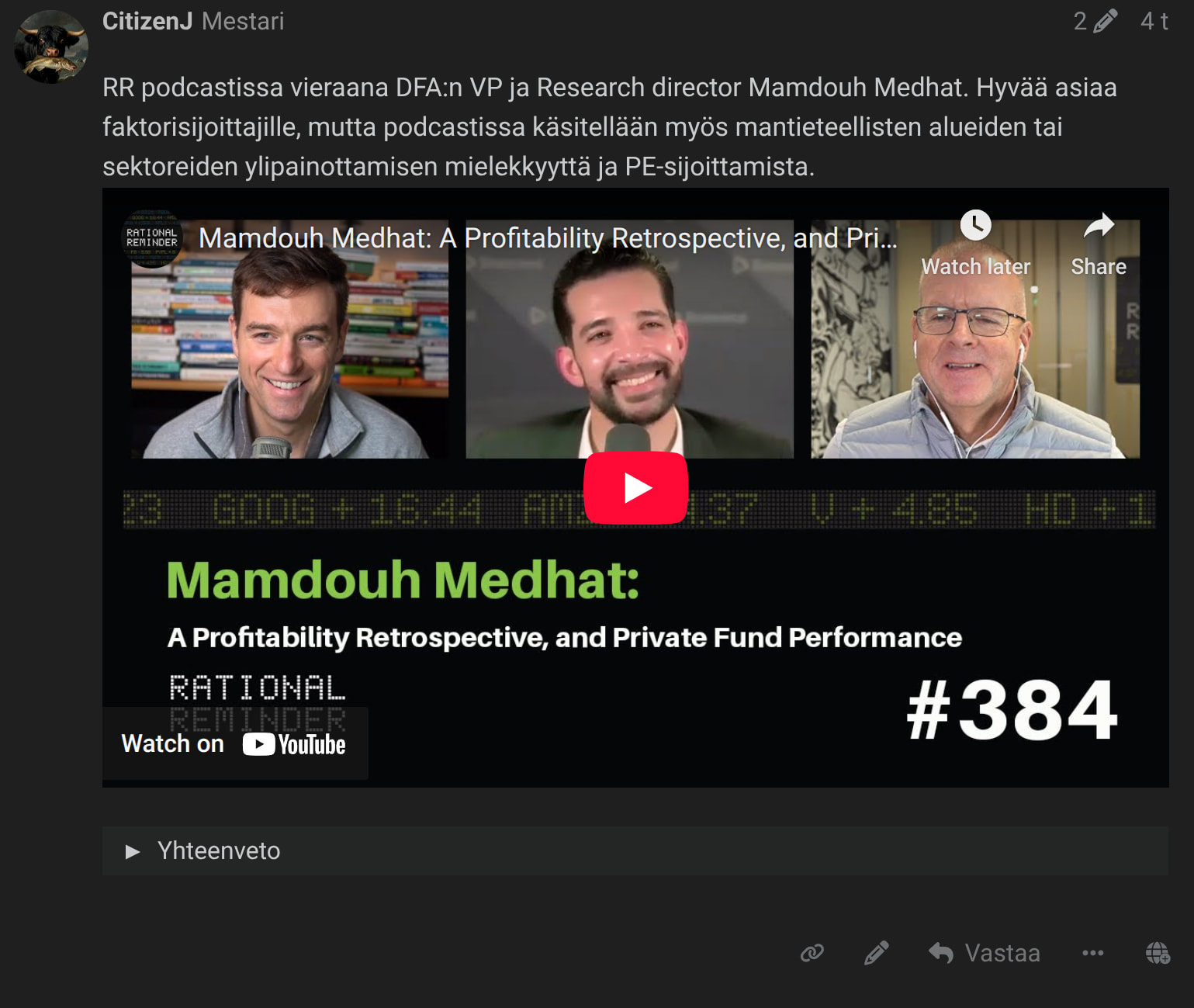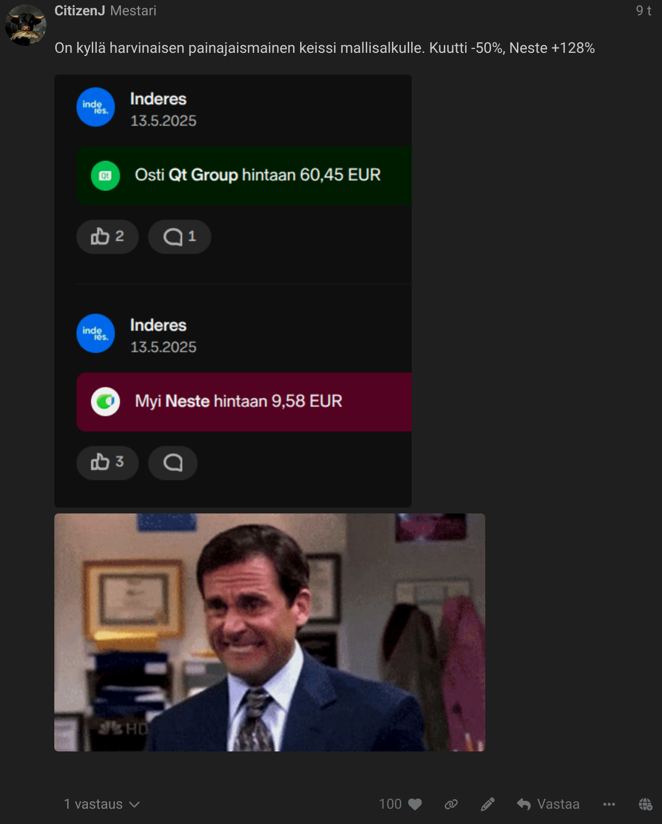 Tämä on ajan henki. Kun massat lukevat (katselevat) meemejä, menestyjät lukevat @CitizenJ kaltaisten foorumistien vinkkejä. Näin ainakin itse luulen tai toivon tekeväni. Kiitos kaikille arvokirjoittajille