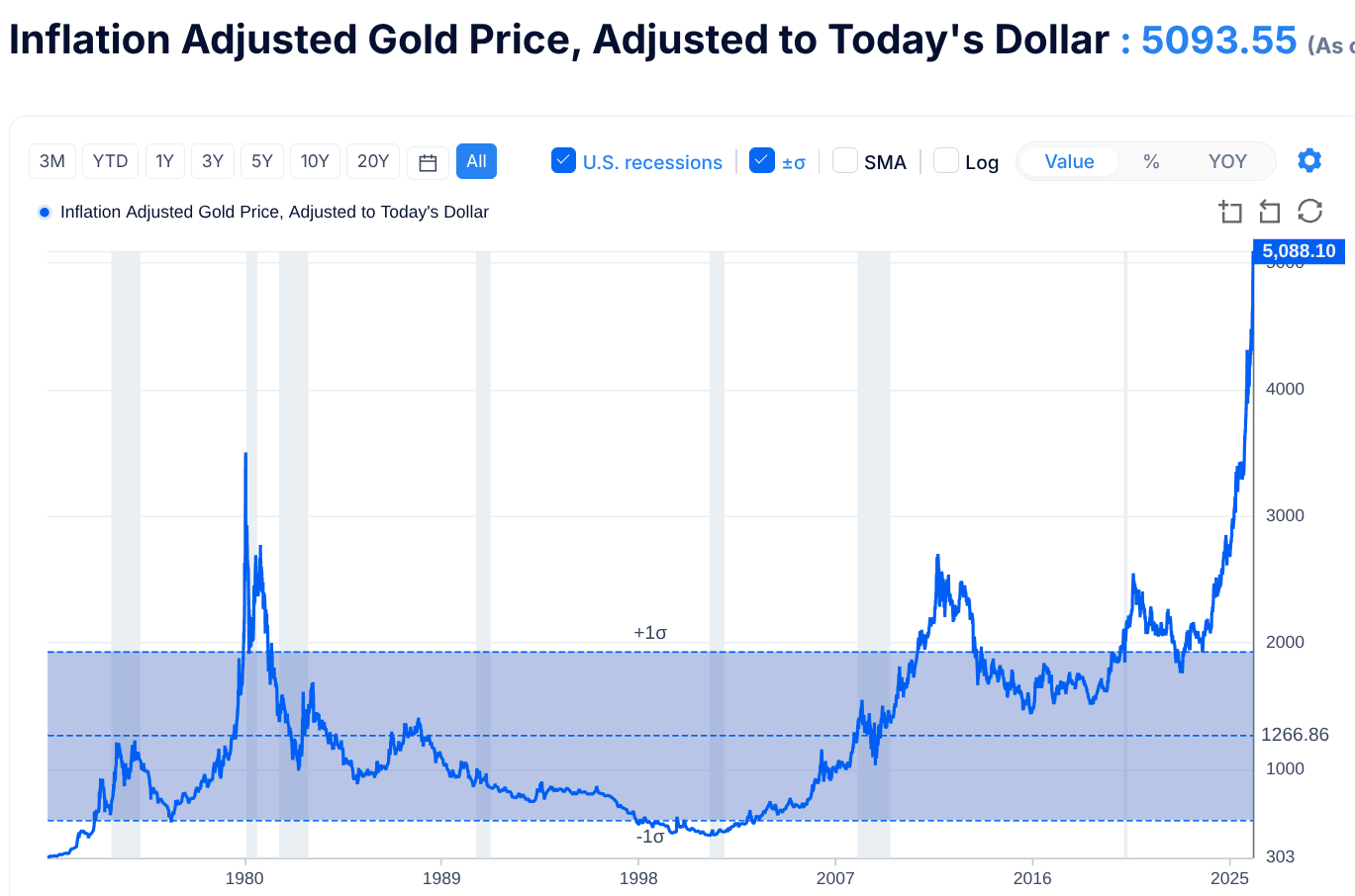 Kullan hinta oli lähes 3000 dollaria vuoden 2024 lopussa, kun Suomen pankki myi. Eli kullan hinta oli koholla historiallisiin tasoihin nähden jo silloin. Ei kulta ole reaalisesti tuottanut pitkän historiansa aikana oikein mitään.