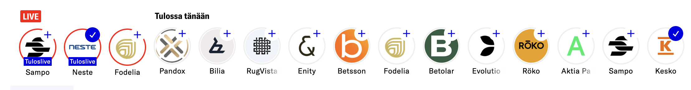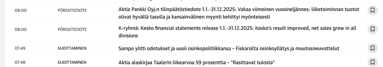 Eli fiskarsista kerrotaan jo 7.49, kuten Aktiastakin (Korjaus, ei Sampo). Tiedotteet sitten 8.00 ja 8.25