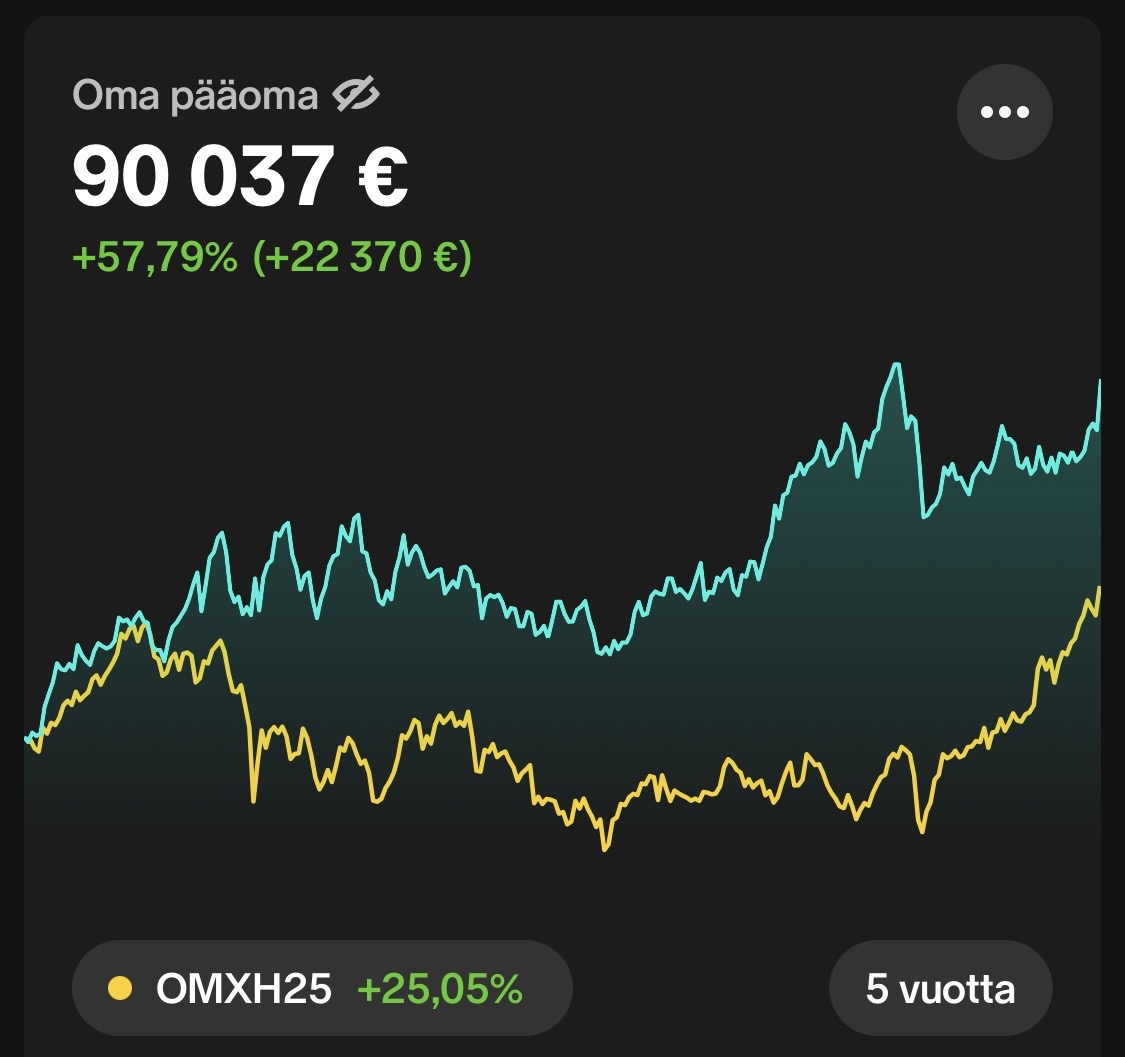 Viiden vuoden tuotto +57,8 % samaan aikaan kun OMXH25 on +25 %