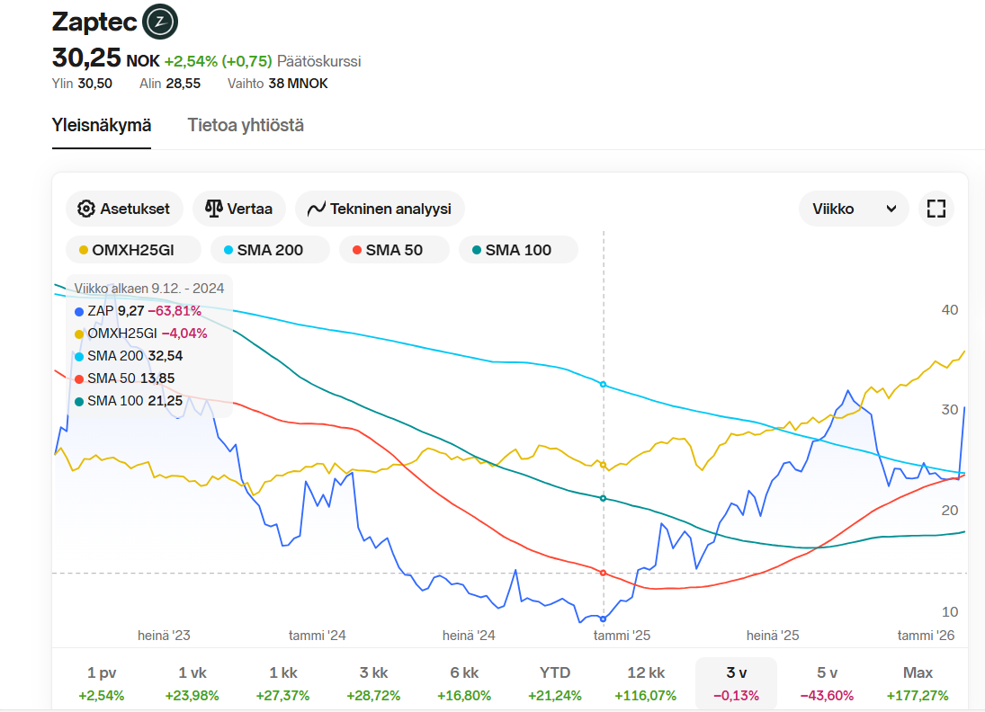 Suomalaisten suosikkiaihe kun on niin onnittelut niille jotka vuosi sitten ostivat tai lisäsivät Zaptecia niin pääsevät nauttimaan positiolleen maltillista 20% (lisä)osinkotuottoa tänä vuonna ostohinnalla