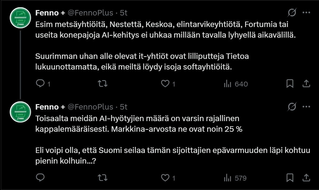 På FennoPlus-X-kontot som drivs av Juha Varis diskuterades lite om Hesuli och AI-risker ![]()