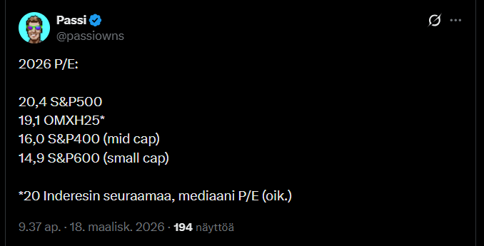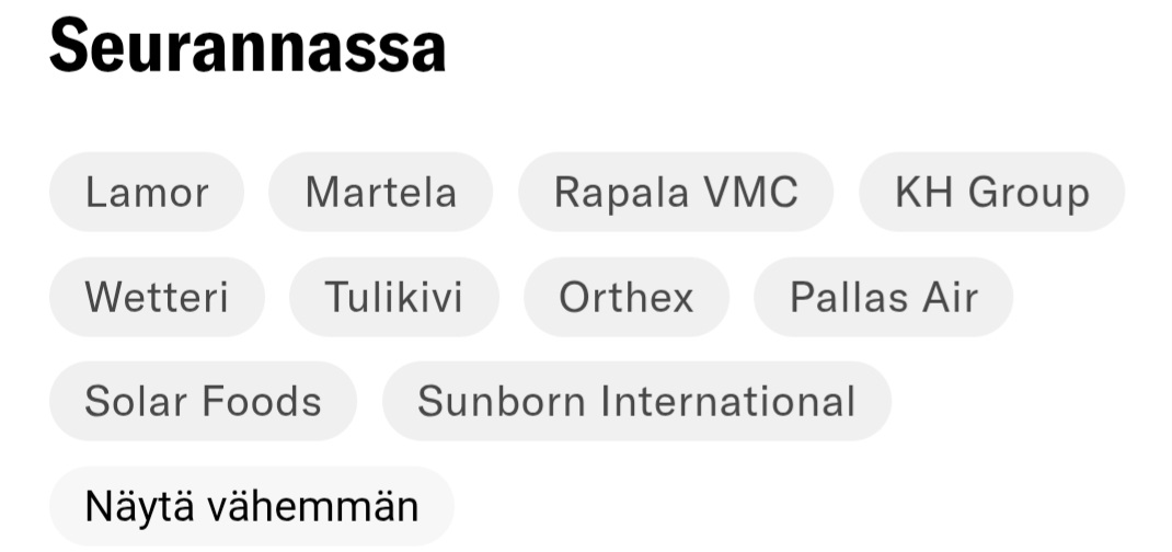 Thomas on roskayhtiömagneetti. 10kpl seurannassa, joista Orthex selvästi laadukkain ja onko jopa ainut joka pystyy tekemään tulosta? Tulikivi, KH, Rapala ja Lamor umpisurkeita, mutta ehkä sijoituskelvollisia kuitenkin jollain alemmalla hinnalla. Solar Foods lottolappuna ehkä jollain hinnalla poiminta, mutta loput ihan täyttä roskaa ja en ostaisi näitä loppuja luultavasti mistään hinnasta jos en saisi myydä pois. Pitäisikö Thomakselle siirtää edes joku toinen kohtuullinen Orthexin lisäksi kun ei kai tuo kovin kiva ole analysoida onko yhtiö täysi raato vai kasa lantaa. Toisaalta voi olla ettei paljoa ole halukkaita kolleegoita ottamaan näitä roskia vaihtarina. Saisikohan uusista listautujista jotain järkevää Thomakselle? Hyvin kuitenkin vetänyt ja ansaitsee vähän parempaa imo.