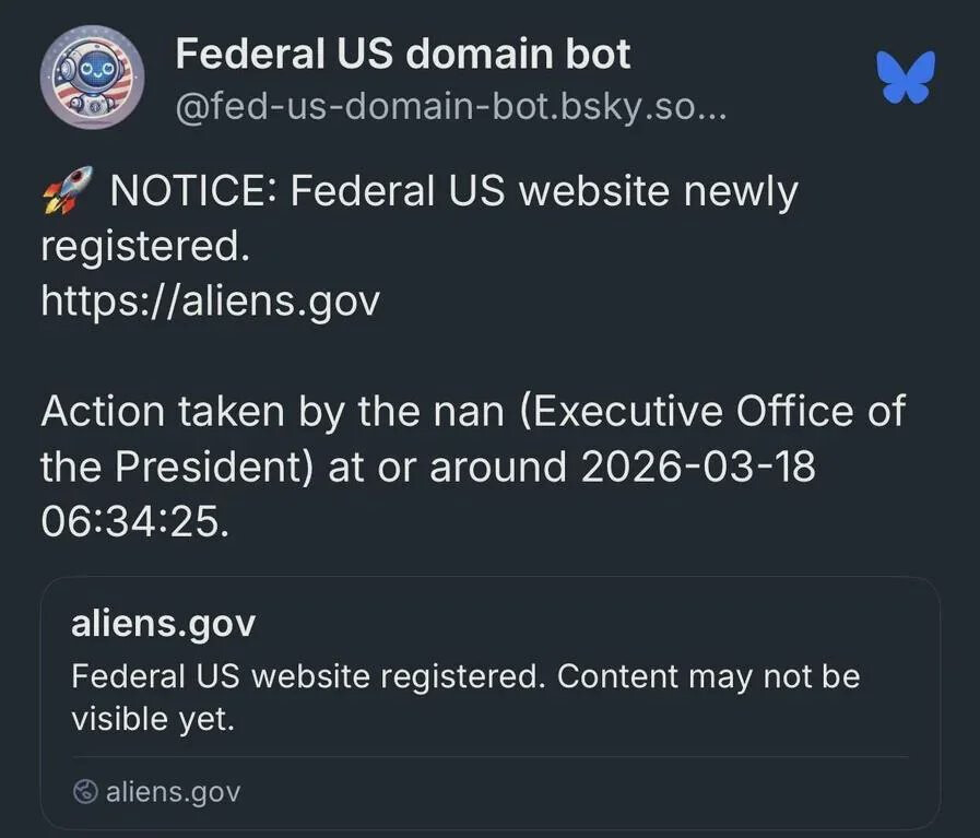 The US government seems to have registered a new domain for themselves