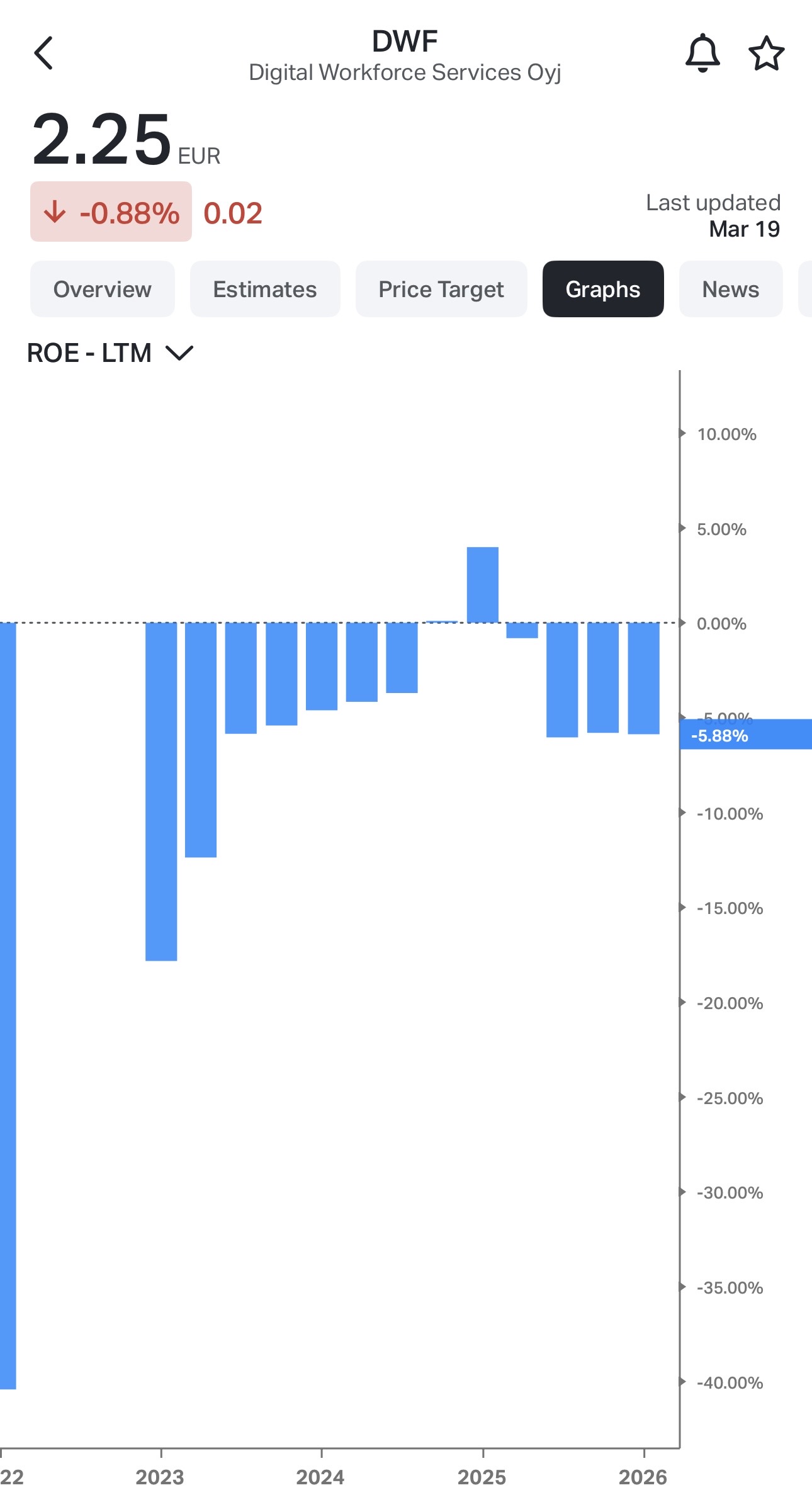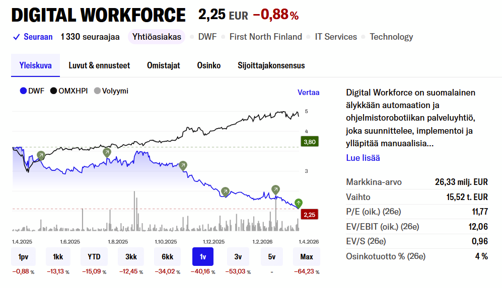 Jeg har tænkt det samme i et stykke tid nu. Dette er især tydeligt i First North, men lignende tilfælde findes i alle grupper, der er mindre end Nordea, Nokia og Kone. Det er svært at tro, at alle er blevet solgt til bunds på grund af truslen om disruption; mange kan endda drage fordel af kunstig intelligens. Jeg er kommet til den konklusion, at hovedårsagen til faldet er 1) svigtede forventninger 2) faldet skaber yderligere fald.