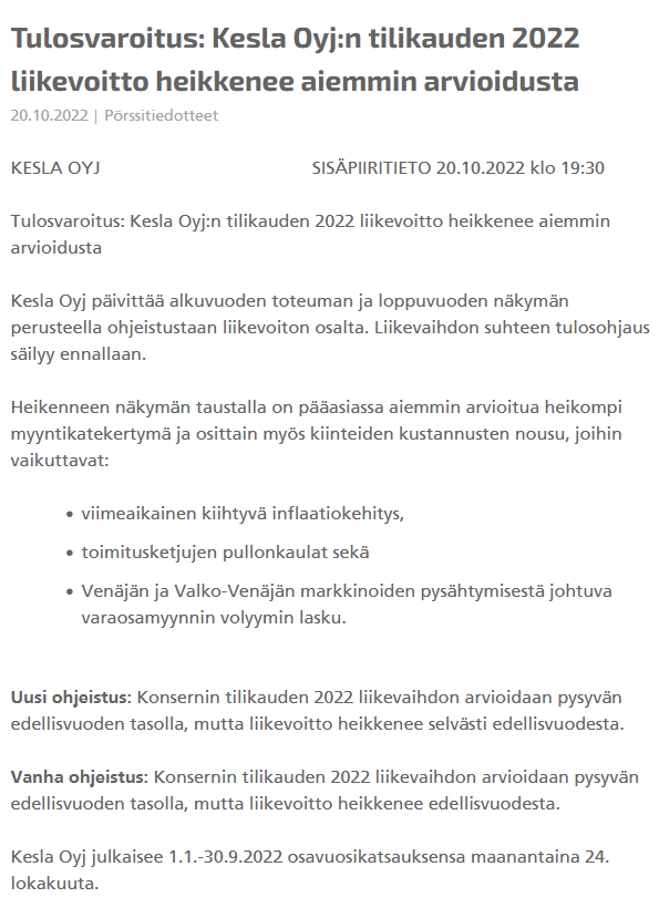 Altså, hvis jeg nu lige tilfældigvis havde Wärtsilä i porteføljen med et afkast på >+40 %, så ville jeg seriøst overveje at hjemtage gevinsten fra det eventyr.