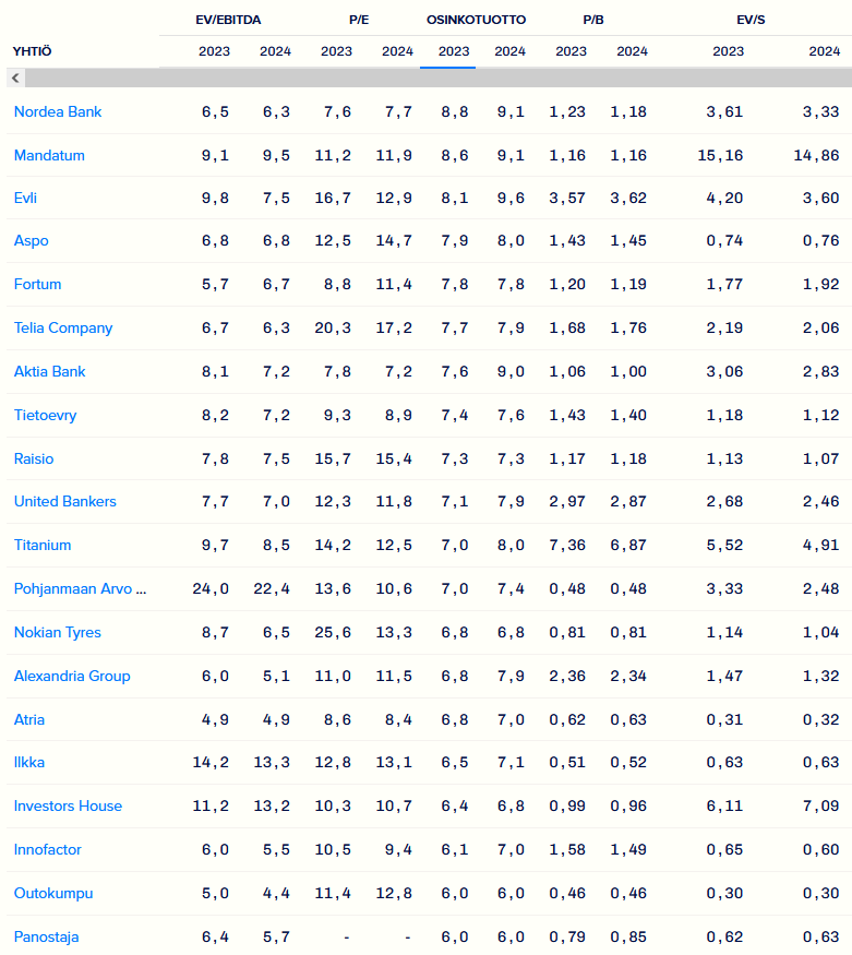 Osinkotuotto on tietysti yksi asia johon voi kiinnittää huomiota, mutta alleviivaisin, että Keskon osake on noin 17 euroa ja Nordean on noin 10,8 euroa eli Nordea on merkittävästi halvempi. Mandatum on kuitenkin ainoastaan 3,8 euroa ja niitä saa jo aika monta yhden Keskon hinnalla. Kesko näyttäytyy aika kalliina tällähetkellä. Kesko on ollut halpa vuonna 2000 jolloin sitä sai hyvin halvalla eli kahdella eurolla.