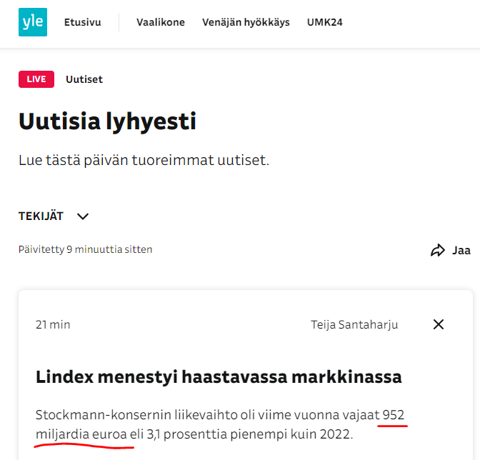 Kiitos vaan ystävällisistä sanoistasi @Mungeroinen , hyvä, jos kirjoituksistani on jollekin iloa, sijoitussuosituksina niitä ei kuitenkaan kannata ottaa Kannattaa aina muistaa, että mm. Tokmannissa olin vielä aika härkämäinen yli 20 euron hinnoissa, tämä toki ei ole muuttunut, kurssi vaan on ottanut hieman osumaa