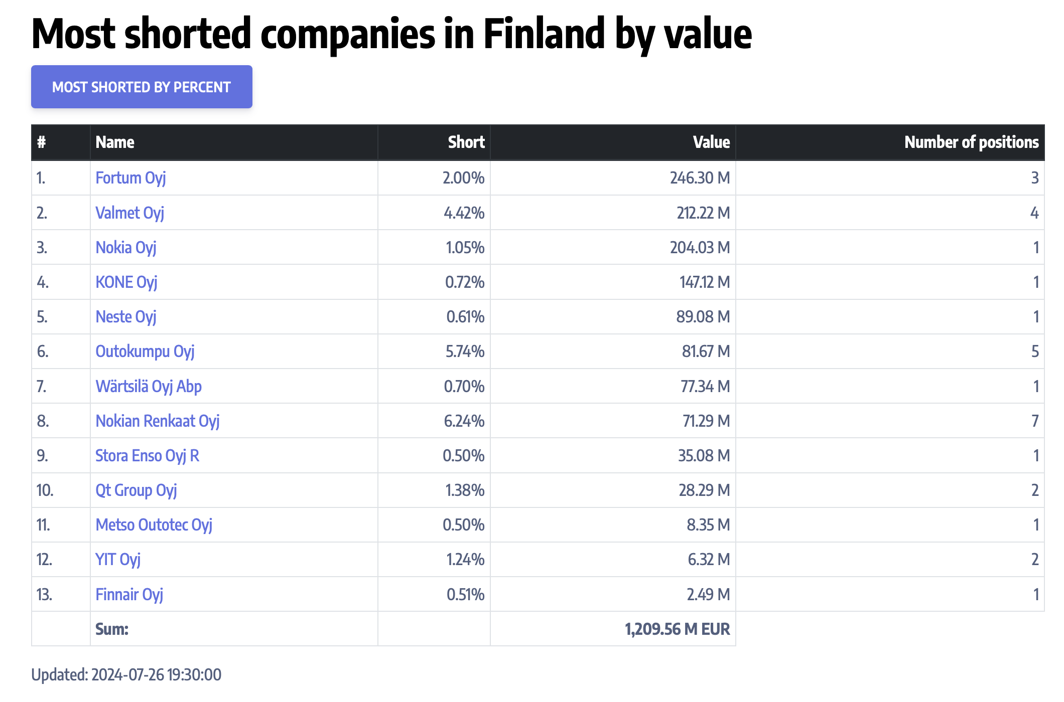 Heitetään tähän vielä Hesulisijoittajille tutumpi listaus ShortNordicilta ![]()