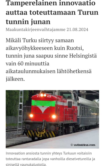 Lähde: Tamperelainen innovaatio auttaa toteuttamaan Turun tunnin junan – Uutissirkus