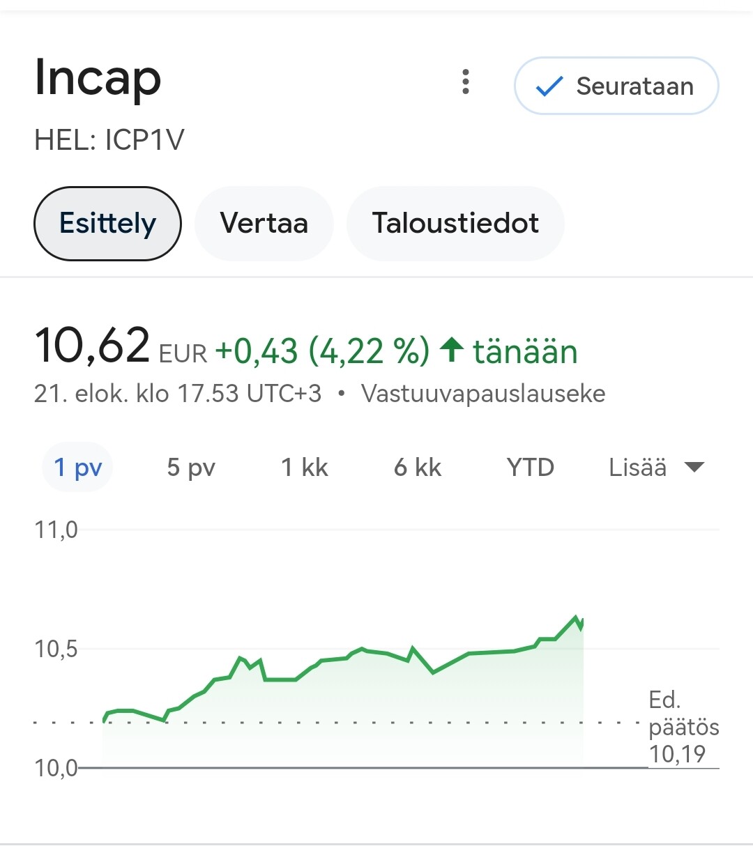Mauri sai viimein aikaiseksi laitettua katsauksensa Incap-ketjuun ja kurssi reagoi näin. Kiitos näkemyksestä! ![]()