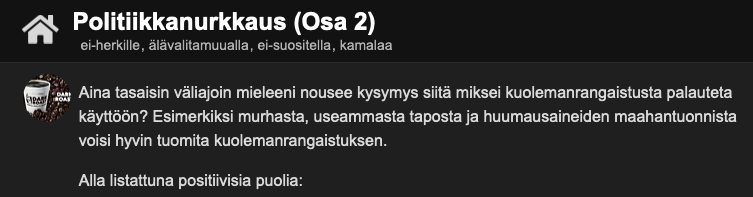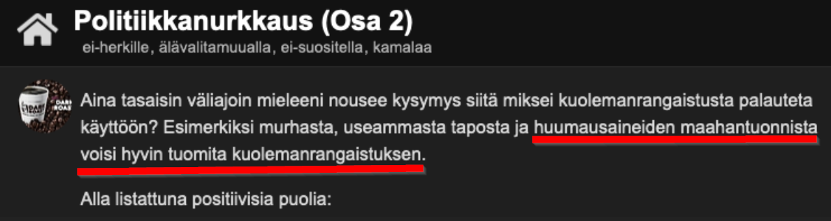 Avasiin politiikkanurkkauksen vahingossa ja tämä viesti lävähti ensimmäisenä naamalle ![]()