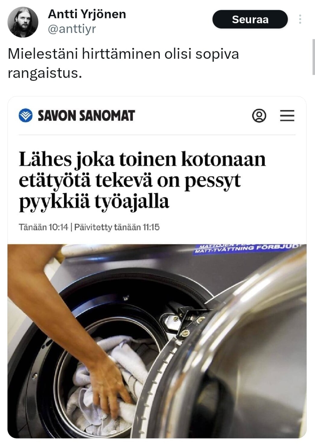 Pssst … Tötöilin ja meni mankeli alta … vieläks sul on klitsussa se sun faijan vanha Tunturi
