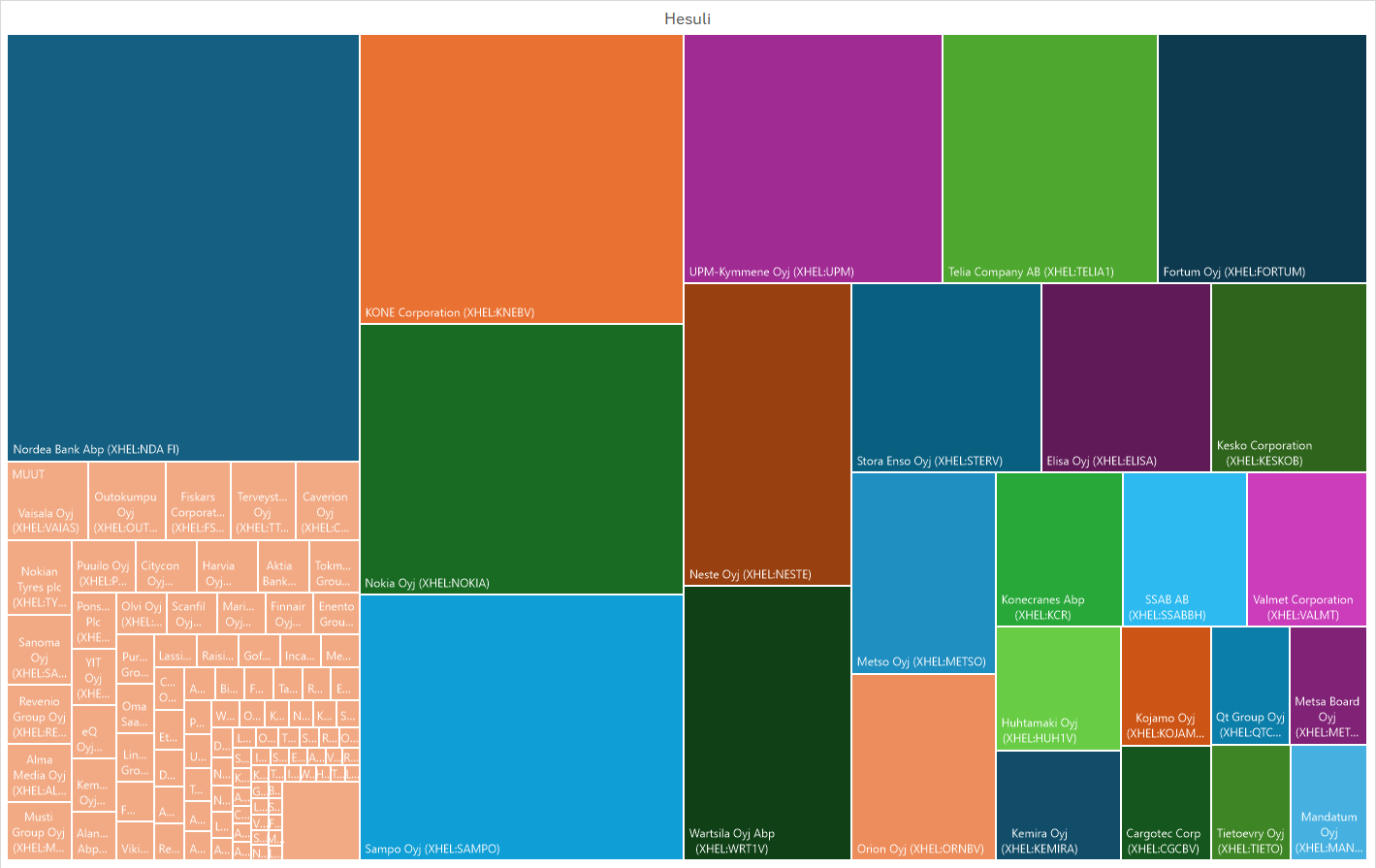 Muut yhtiöt ovat top25 yhtiöitä. Top25 yhtiöiden markkina-arvo 87%