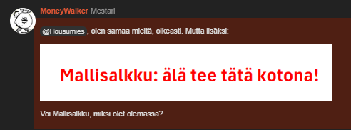 Miksi ihmeessä tuo viesti katosi bittiavaruuteen? Sehän osui suoraan härän silmään eli kysymykseen: miksi Mallisalkku on edes olemassa? Samalla paljastettiin karu totuus – Mallisalkkua seuraamalla pärjää kuin märkä villasukka maratonilla.