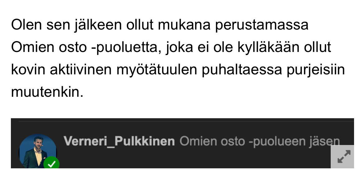 Verneri, räpäytä silmiä kolmesti seuraavan Vartin alussa, mikäli sinut on voimakeinoin pakotettu osinkopuolueesta tähän kamalaan omien osto -sekoiluun.