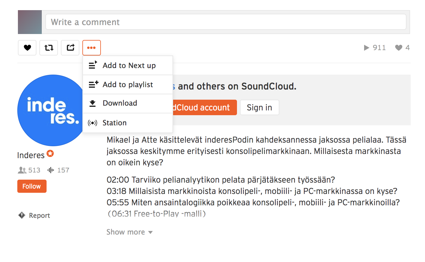 Hei, aivan turhaa ‘‘piilotatte’’ inderespodin soundcloudiin. Jengin on sinne vaikea löytää ja palvelisi paljon suurempaa yleisöä, jos toteuttaisitte podin samaantyyliin kuin Nordnetin Rahapodin. Eli kamera(t) kuvaamaan podia ja se sitten Youtubeen. Aika vanhanliiton meininki, kun ei kuvaa saada 2018
