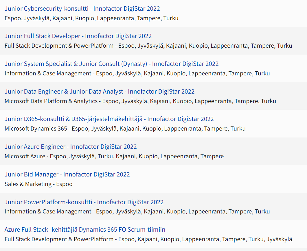 Innofactor verkar rekrytera ganska många på juniornivå: