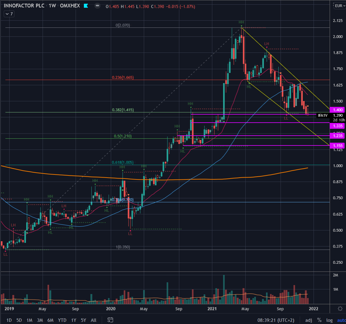 Tekniskt sett ligger vi på en stark stödnivå 1,4 och fibnivå 0,382. 1D RSI-divergens håller på att bildas. Dessa indikerar alla att nedgångstrenden är på väg att avslutas. Nästa stödnivåer är 1,335, 1,235 och 1,155.