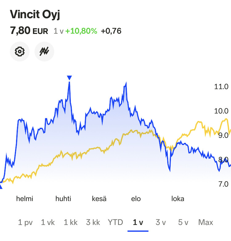 Kannattaa myös muistaa, että IT-palvelusektorin firmat eivät ole viime kuukausina muutenkaan ole olleet mitään raketteja vaan kehitys ollut neutraalia tai mollivoittoista. Tulospohjaiset kertoimet ovat kautta linjan (Goforea lukuunottamatta) edullisia. Veikkaan, että palkkainflaatio pelottaa sijoittajia enkä usko, että mitään pomppuja ylös tulee, ennenkuin saadaan ihan lukuja pöytään, jossa pelot marginaalien paineista lakaistaan pois. Innofactorin on ollu lisäksi vaikea kasvaa korona-aikana, ainakin jos vertaa muihin alan yhtiöihin.